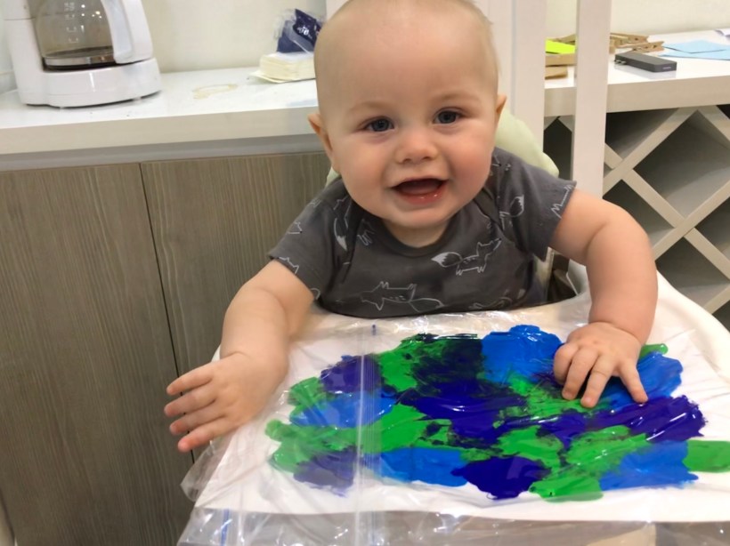I have enjoyed doing more things with Hez now that he seems more like a tiny human. We made Nathan a footprinted fathers day card, and he also made a finger paint masterpiece. It was super easy and Hez didn’t get any paint on him and I think I enjoyed it way more than Him. You can read more about it here!