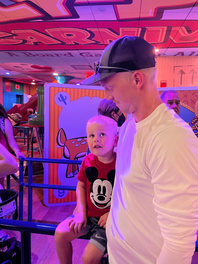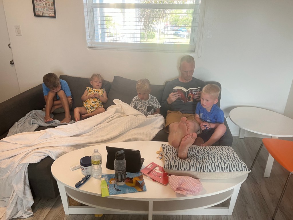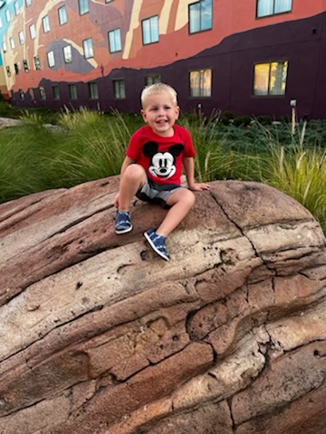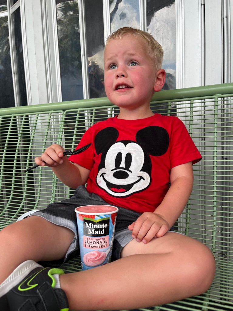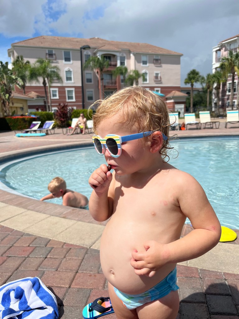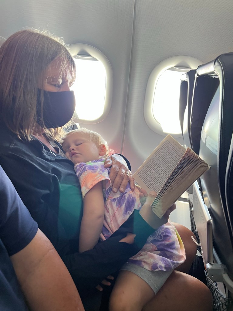 Anyways, we began our trip with an airplane ride from Des Moines to Florida. Naomi had been a plane a few months ago, but the last time Hezzy was on a plane was coming back from Vietnam in early 2020, so it had been a bit. He thoroughly enjoyed having his own seat, a seemingly unlimited snack pile, and watching movies. Naomi loved to go back and forth between my mom and me, but eventually settled in and watched Encanto for a while.