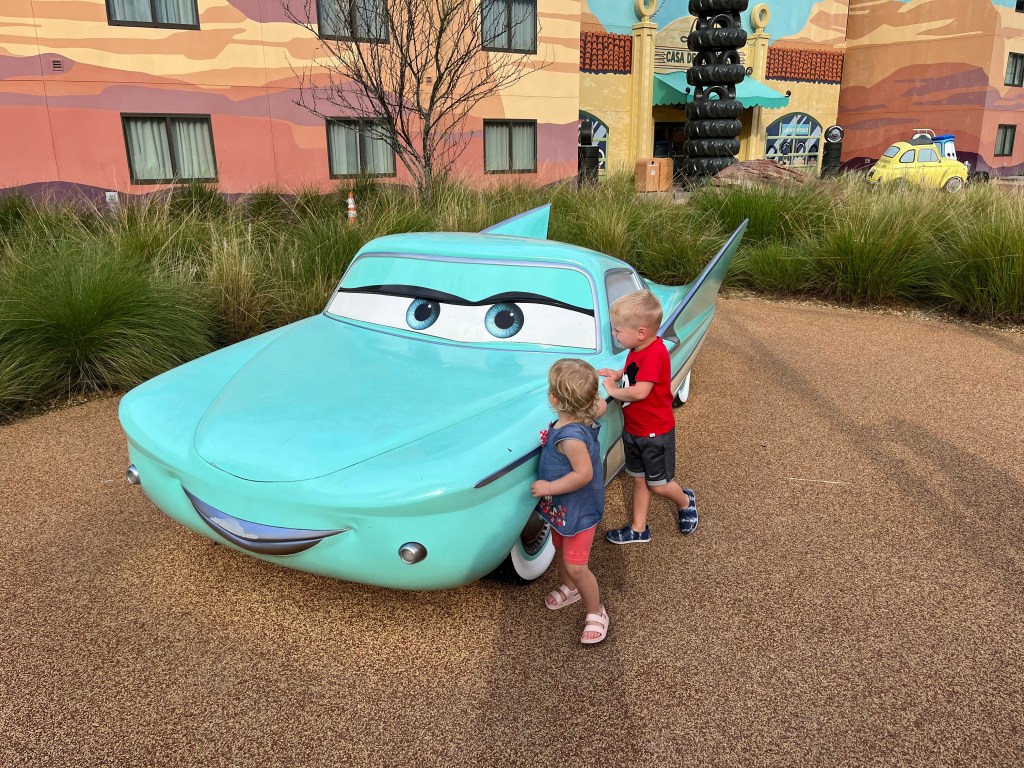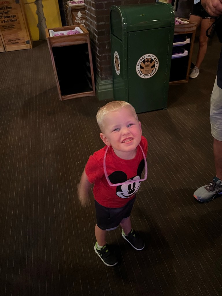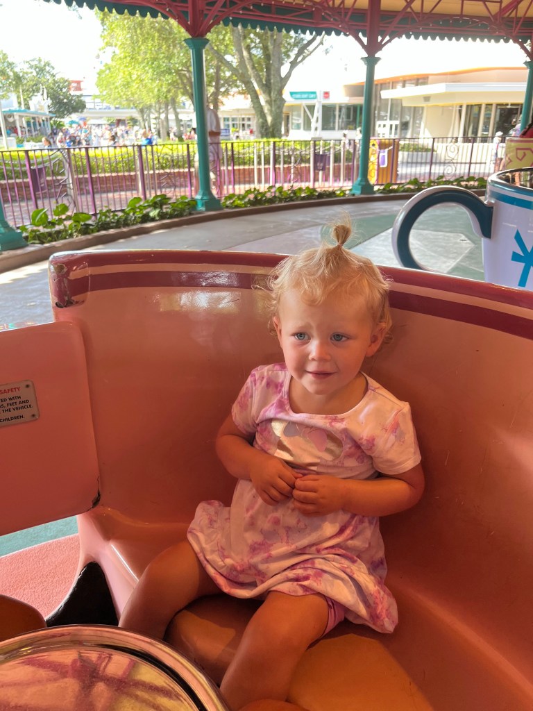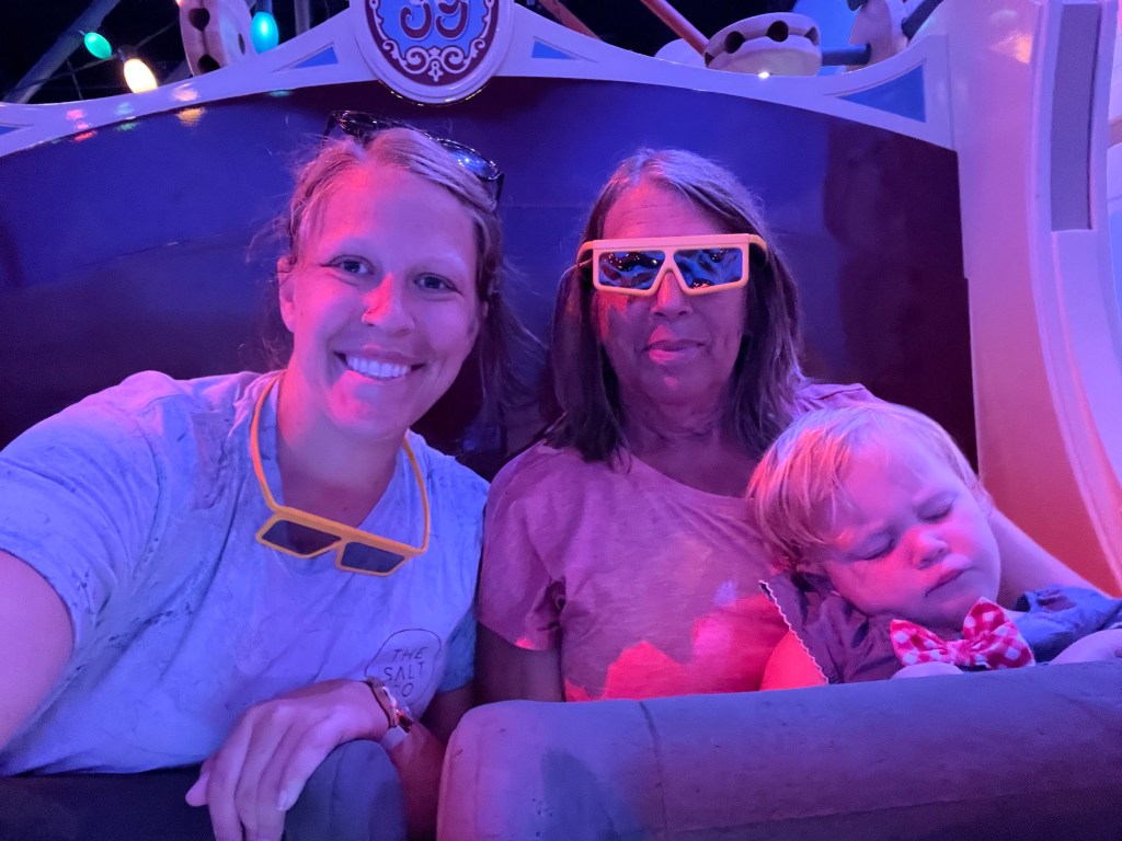 Some other highlights were Toy Story Land, more ice cream, and walking around our hotel (which was cars themed). The next day we went to Magic Kingdom and got right on the Buzz Lightyear ride, which was a favorite. Afterwards, Hez proclaimed that he was all done with rides, so Nathan and him enjoyed some popcorn and a coke while me, my mom and Naomi went on the Dumbo ride. Naomi cried when she realized we had to get off, so I think she will definitely be the thrill seeker of the two. We got to watch the parade, and then went to visit Mickey again. Naomi got really sad when she realized Minnie wasn’t there, but right as we were leaving there was a mini-parade that had all of the Disney characters so she was pretty excited about that.