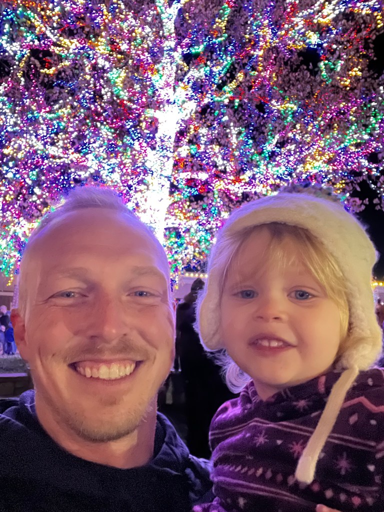 The Friday after thanksgiving we went to the Magic Tree lighting. We got to be there for the countdown (Hezzy was looking the complete opposite direction, so I had to manually turn his head so he didn’t miss it) and we had our first hot chocolate of the Christmas season.