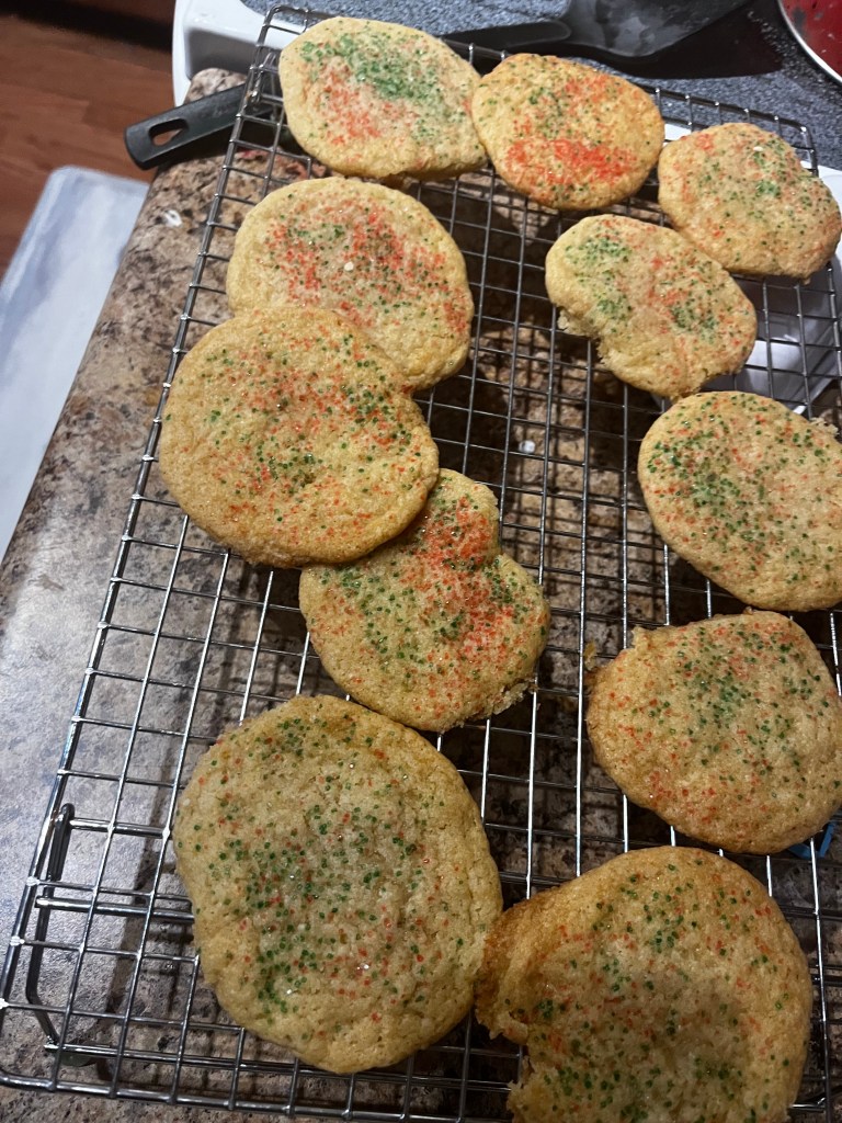 I’ve been trying to document more this newborn phase. She slept in her sling the whole time we were decorating for Christmas and making cookies. I only dropped cookie dough on her head once….