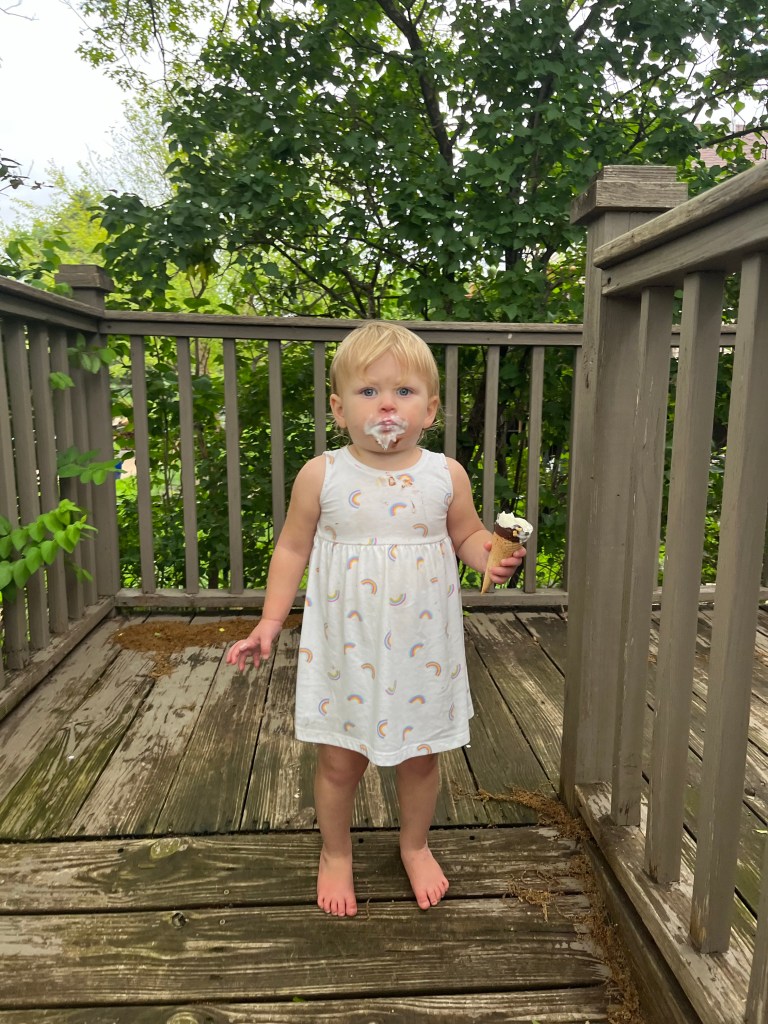 She has the sweetest blonde curls, and the most round, blue eyes. She is still her wild self, but also can be shy and timid around new people. Her pink elephant “Ellie” is her favorite stuffed animal (I think this is #3 or #4—next time we will get a stuffed animal that is easier to clean).