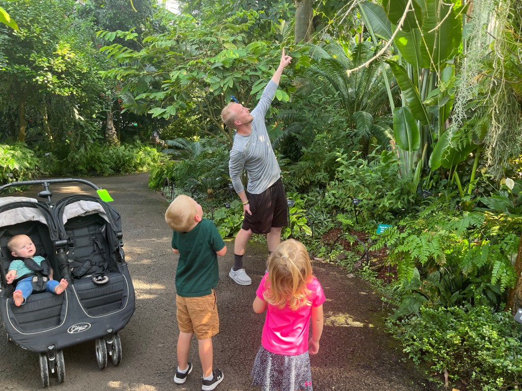 So, we headed to the Lou (do people call it that?). We took of Tuesday after preschool pick up and we went right to the botanical gardens. We got there around 3:00 and this was definitely our biggest mistake—we could have spent all day there. It closes at 5:00, so we didn’t opt in to paying a little bit extra for the kids play area, but I’m already planning another trip to do that because it looked FUN. The garden itself was really beautiful, the kids liked exploring all of the different areas, and it was definitely worth the admission price.