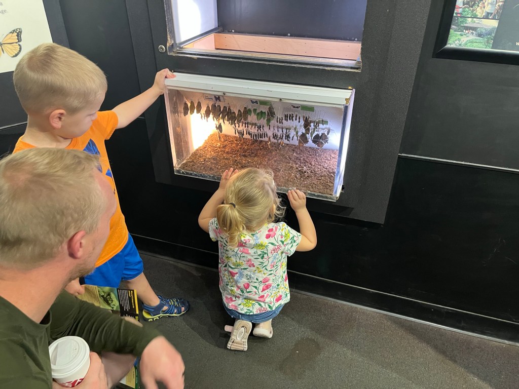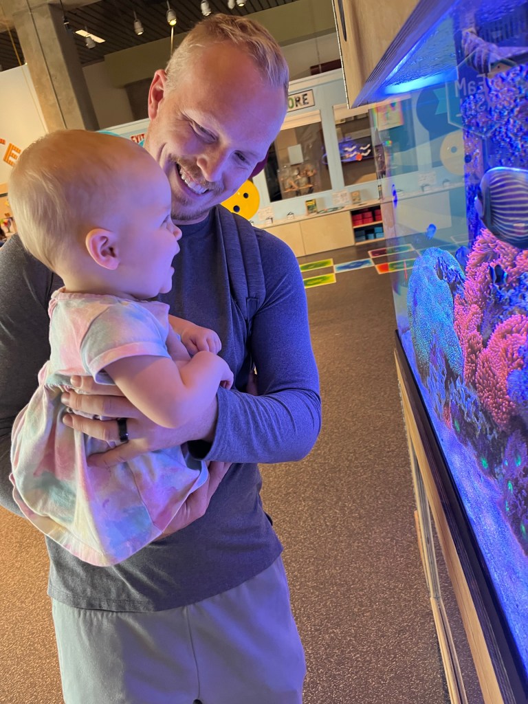 And then today, we headed to the Aquarium! I had a hard time paying for something when there are so many things to do in St. Louis that are free, but we decided to try it out. It is a bit of a splurge, but I definitely think it was worth it if you have kids ages 2-8 (I think older kids would get bored). There were plenty of hands-on activities like a big water table, a sand table and a ton of opportunities to touch different animals. My kids really enjoyed it and it wasn’t too overwhelming for them. You didn’t have to walk too far, and there were lots of little stations. Toward the end, our kids started feeling the effects of a few packed days, and a diet consisting of frozen pizza, PB&J and granola bars. We decided to pack up and head home.
