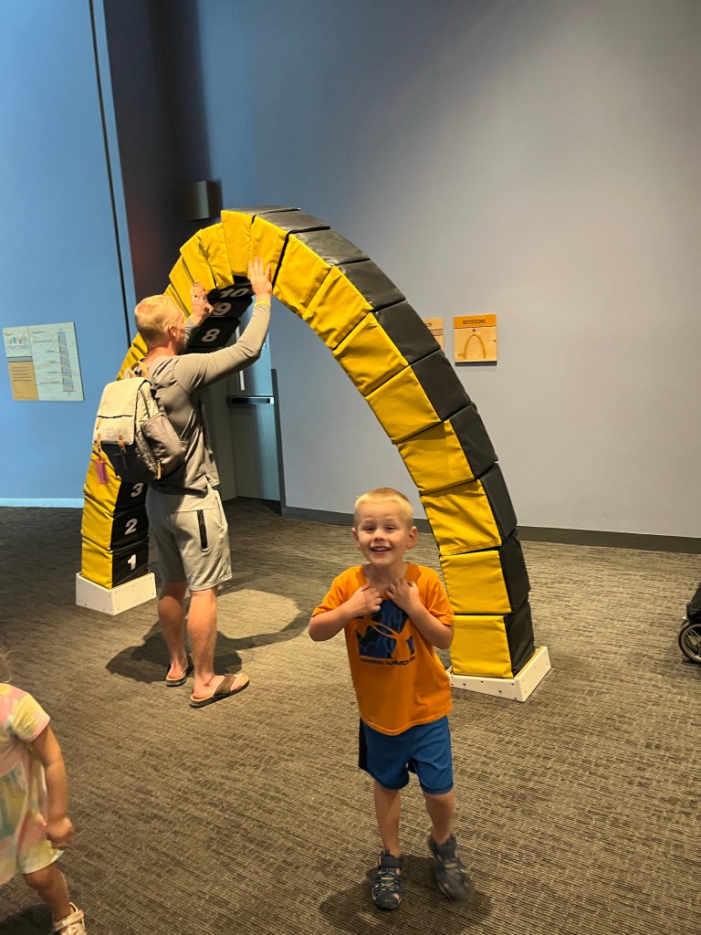 I had a week off of work, and so we decided it would be fun to travel somewhere. While I tried and tried to convince Nathan how fun it would be to go to the beach, he figured 13 hours in the car with three kids might not be the most ideal. We picked St. Louis because 2 hours in the car is a whole lot better than 13, and there are so many things to do in St. Louis with little kids that we usually don’t do because we just make day-trips.